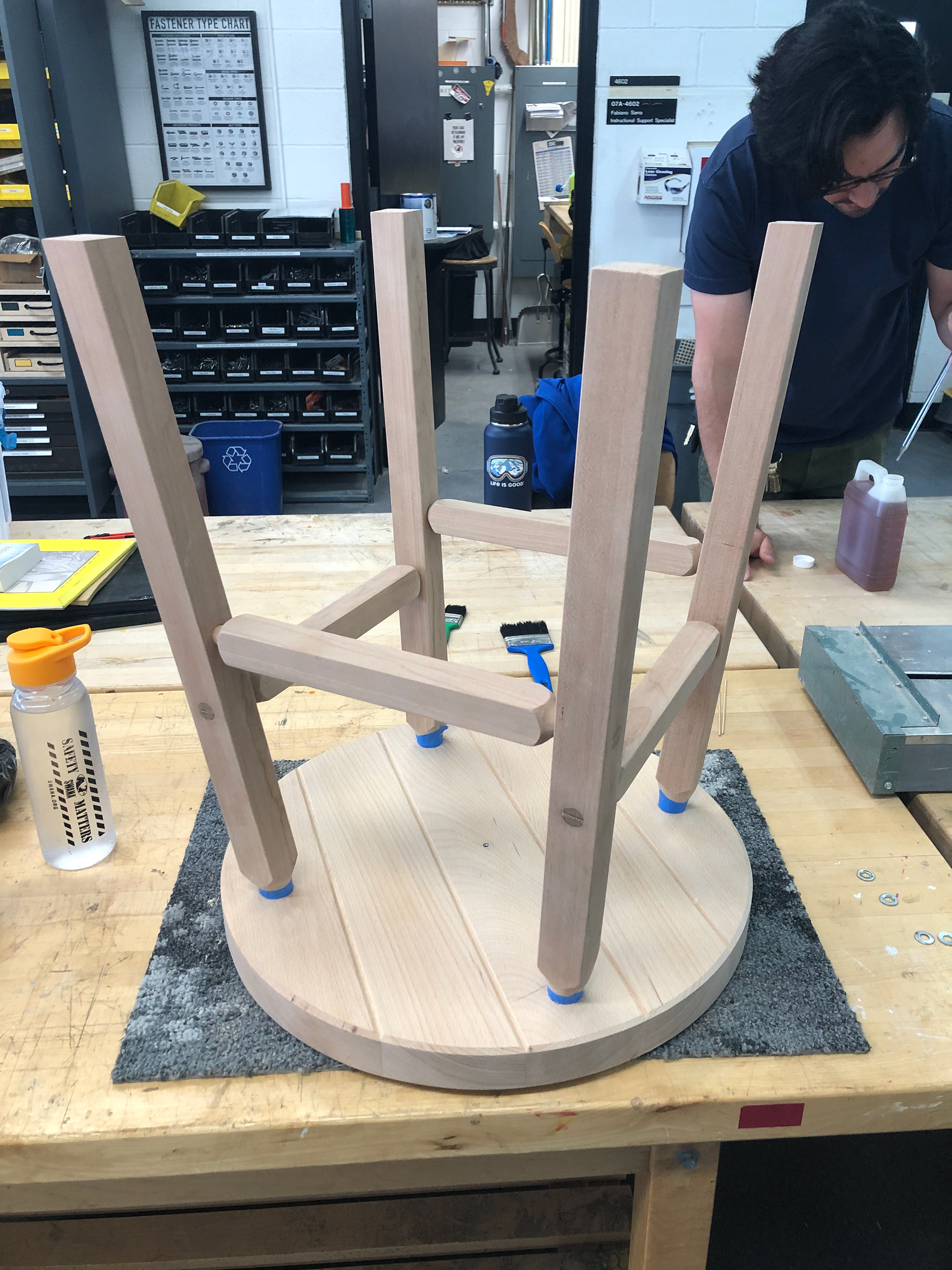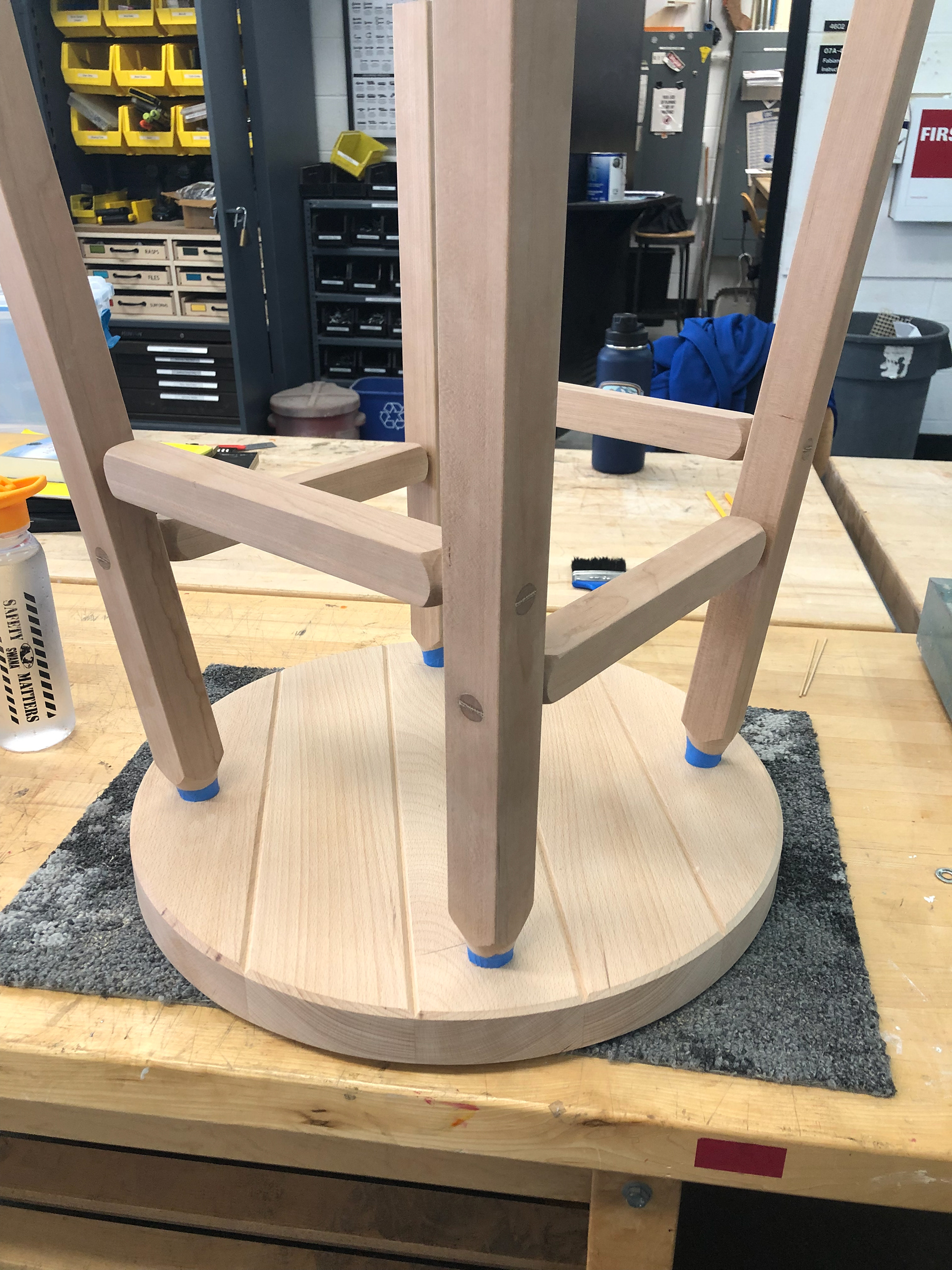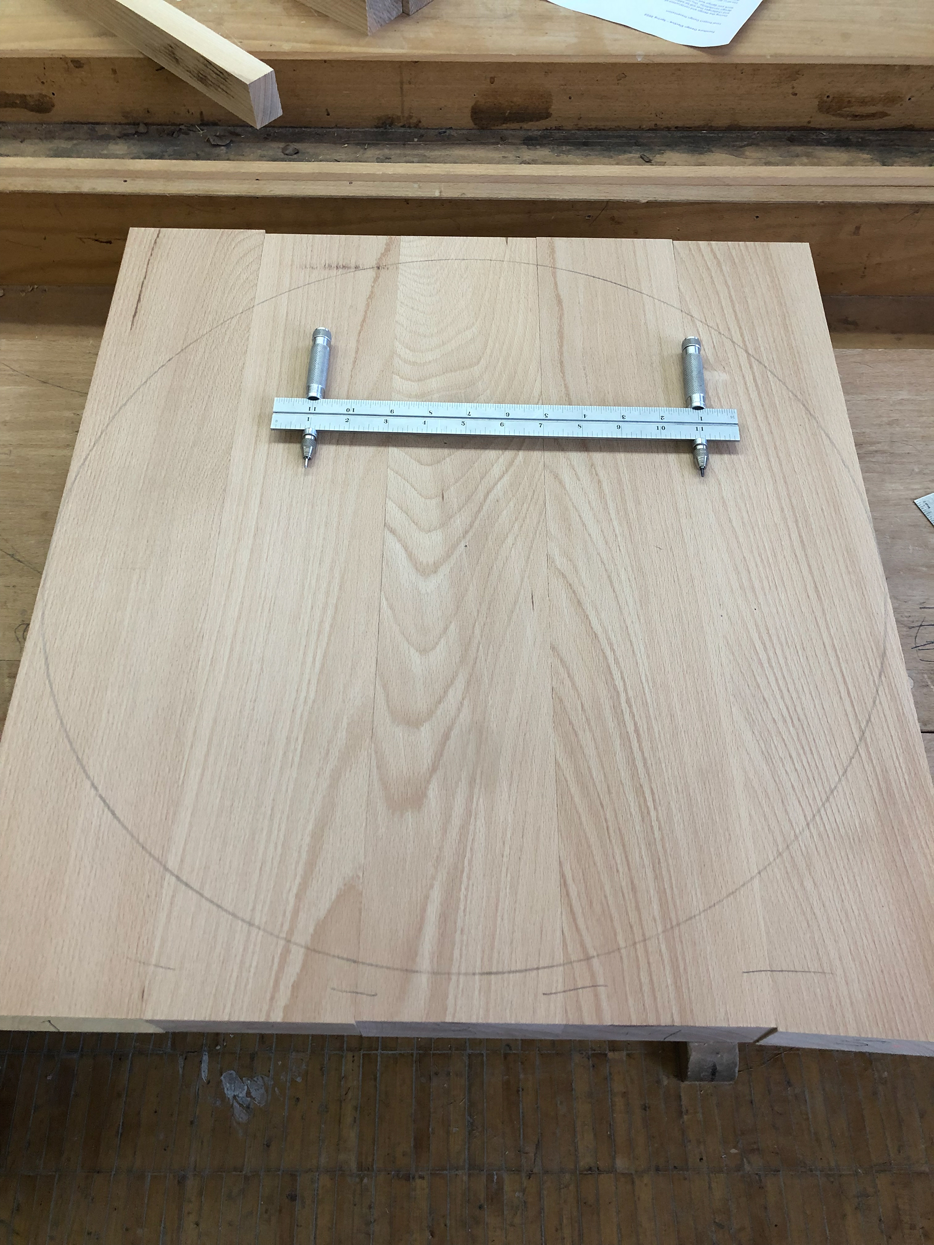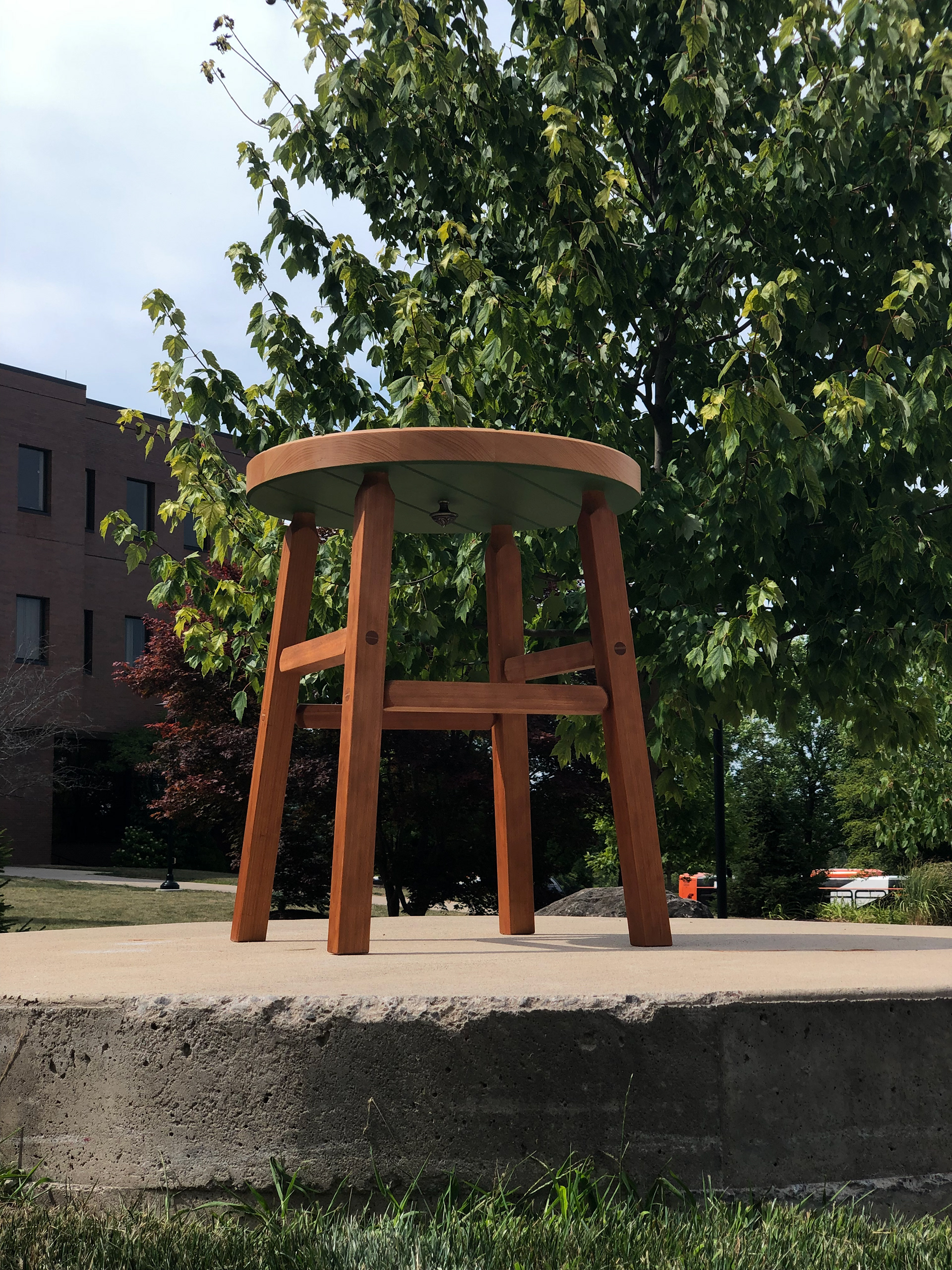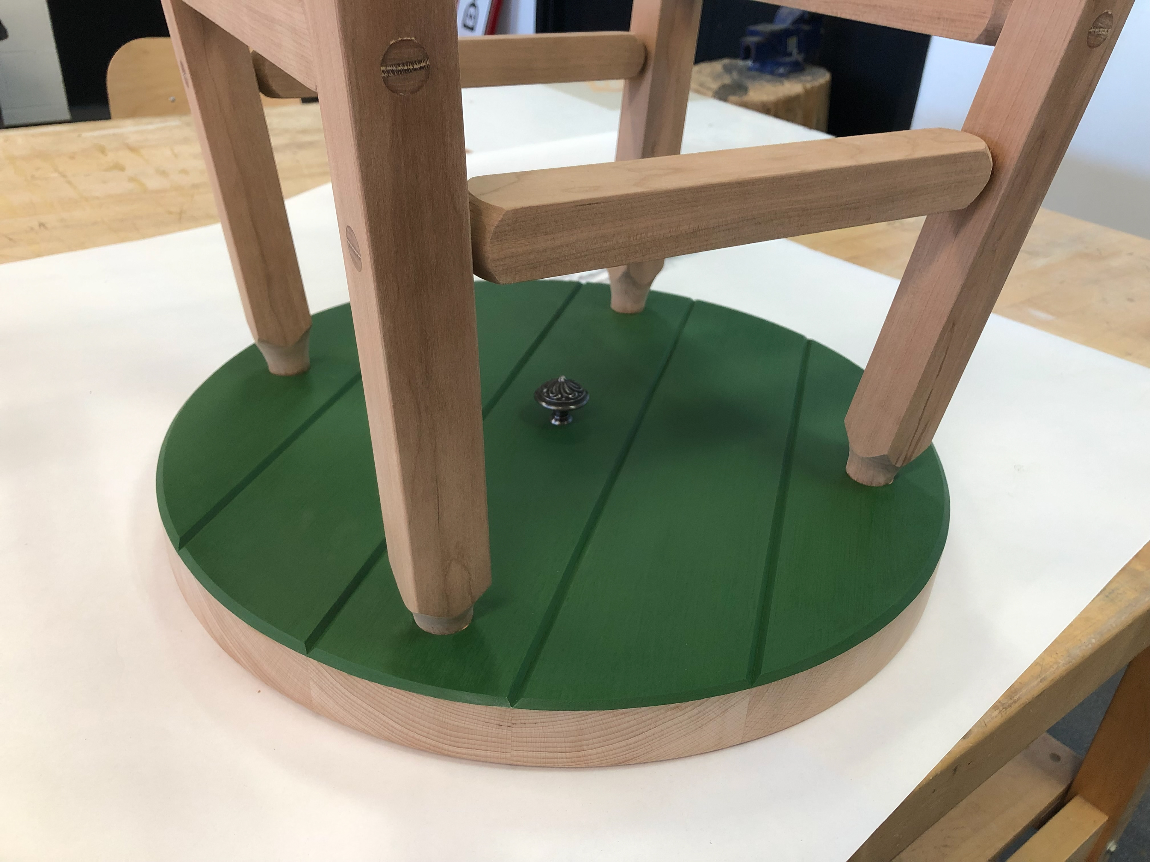 A Table inspired by the door and furniture of Bilbo Baggins from The Lord of the Rings. Tabletop made of beech wood, legs made of cherry. Wood burned design on top. Linseed oil painted underside with antique doorknob. Linseed oil and wax finish.
